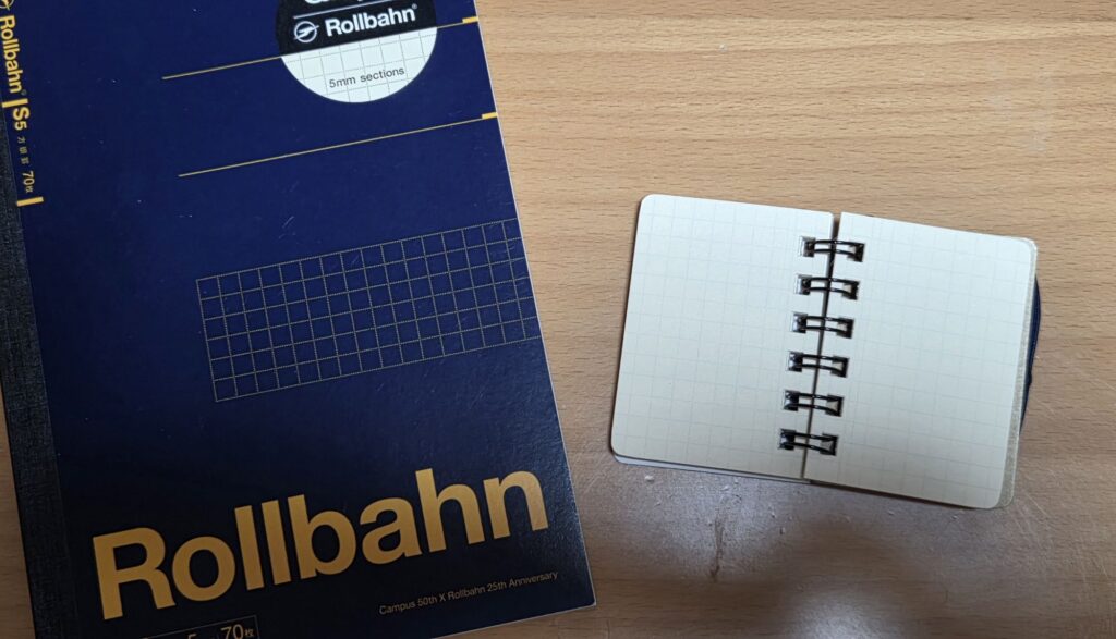 Campusの「事務的で地味」という弱点がRollbahnのデザイン性で解消され、Rollbahnの「リングが少し邪魔・厚すぎる」という面がCampusの綴じノート形式でスマートになっています。