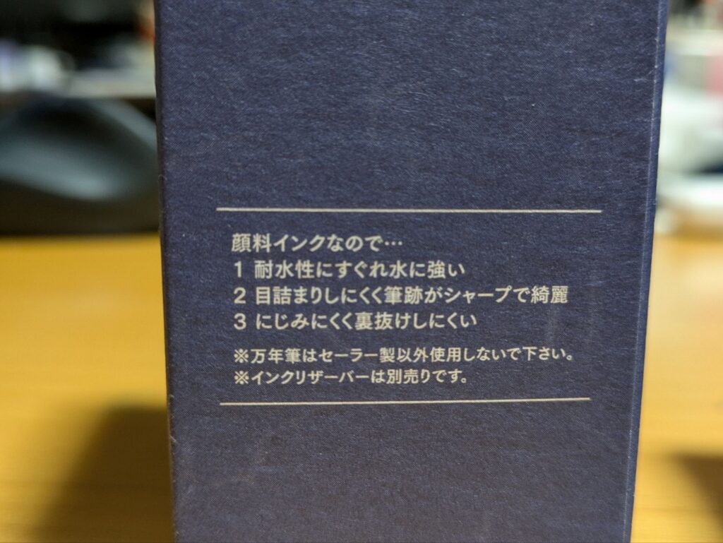 以前は、セーラー製インク統一のの丸い瓶デザインに、最後までインクをしっかり吸える「インクリザーバー」もついて、めちゃくちゃコスパがよかったそうですが、今回のリニューアル版はそのインクリザーバーは別売りになっています。