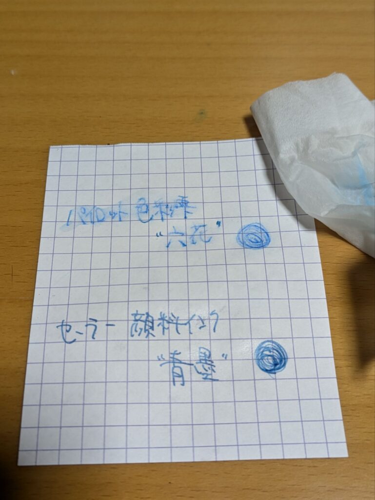 さらに、水滴を拭いてみると、色彩雫はは滲んで文字が擦れたのに対し、青墨は同じくビクともしません。