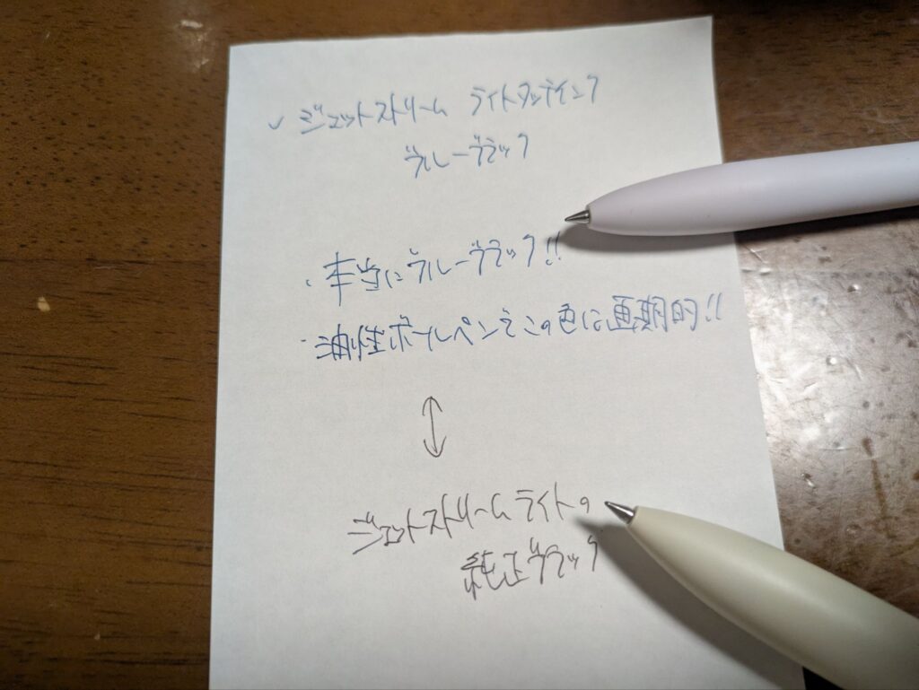 ただでさえそんな珍しいインクなのに、ストレスフリーな書き味で有名なジェットストリーム・ライトタッチインクにその色が出たのですから、それは試さない点はありません!!