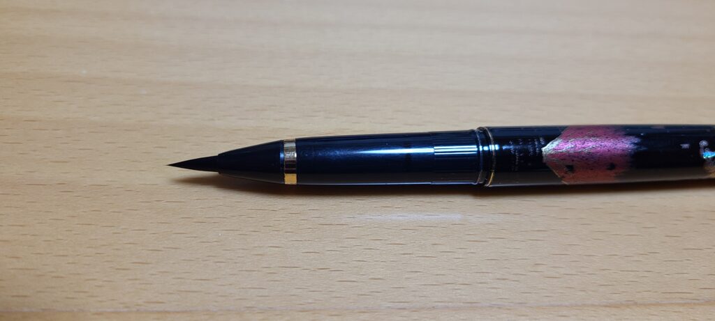 この万年毛筆も正直ピンからキリまであり、私の持っている万年毛筆は耐久性に優れたポリエステル製の毛とプラスチックボディでできた、エントリーモデルです。