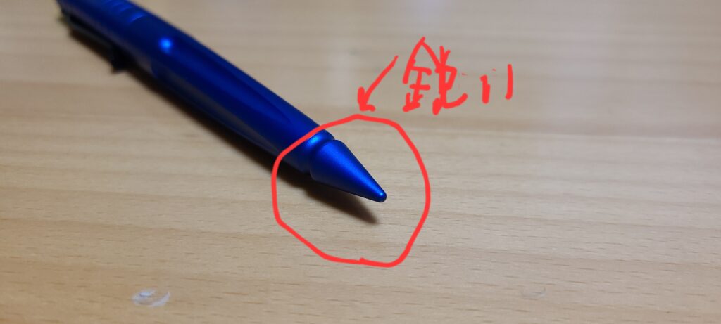 これ、先端が少し尖っており、護身用として設計されているペンです。