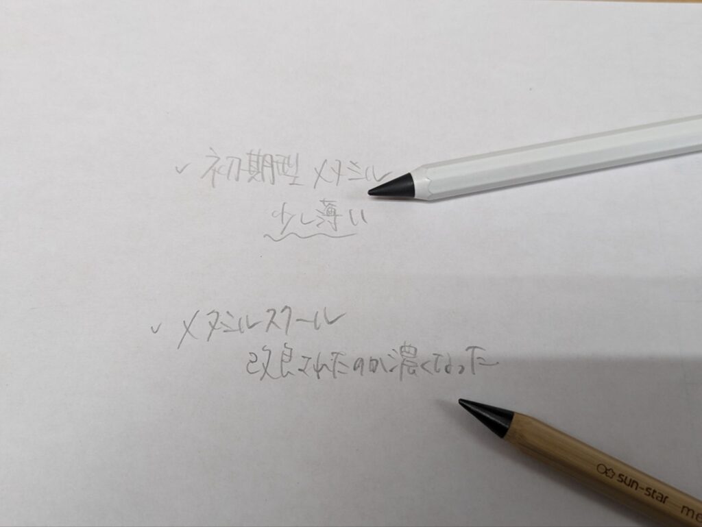 メタシルのウィークポイントでもある、色の薄さも少し濃くなり、一般的な鉛筆同様に書くことができるようになっています。