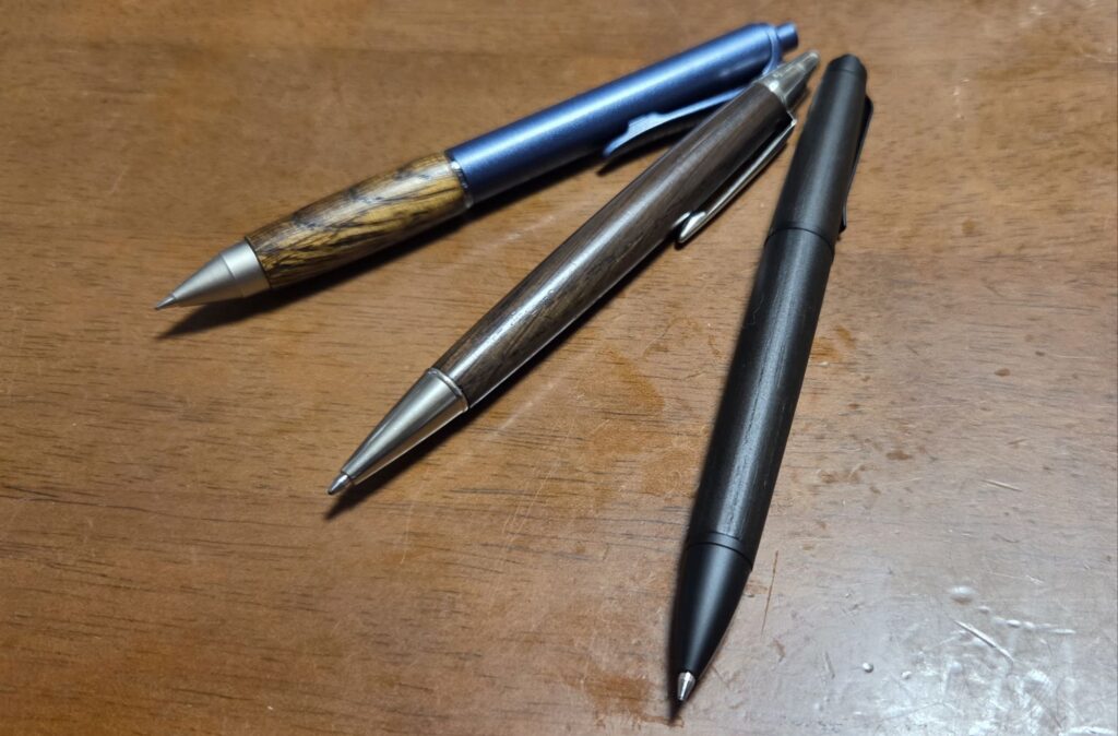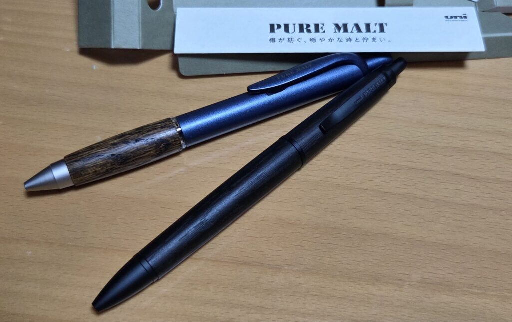 従来、三菱鉛筆さんはこの「ピュアモルトシリーズ」の他、バンブー(竹)やカリモク家具の木材、クルトガウッドなど、木を使ったペンの作成がとっても上手なメーカーさんです。