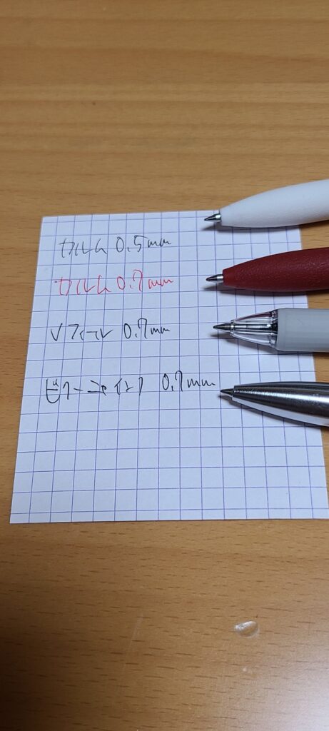 あとはインクの減りが少し早めであったり、ジェットストリームやアクロのように極細がないことが挙げられます。